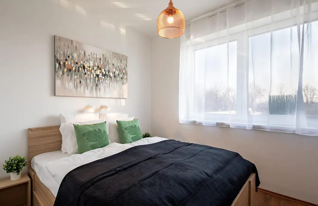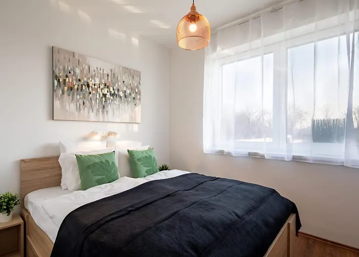 The large Heroes' Square can be reached by car in a few minutes, while Uj Buda Center is right by the apartment. The 42 m² apartment is close to Elevenpark, situated merely 300 metres away.